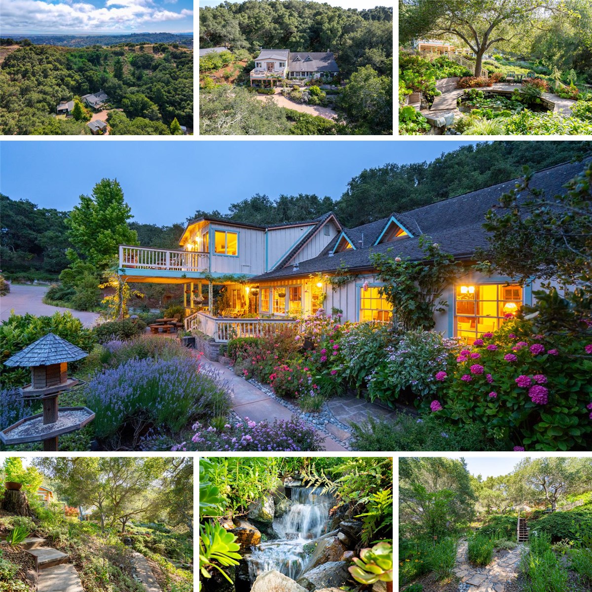 Thoughtfully landscaped and lovingly curated over the past 20 years, the lush, oak-studded grounds offer a meditative retreat feel with a calming koi pond and waterfall, fairy and butterfly gardens, meandering meditation paths, multiple flagstone walkways, decks, raised beds, fruit trees including avocado, orange, and apple, sitting areas, bird feeding stations and all of it privately enclosed by 8-foot deer fencing.